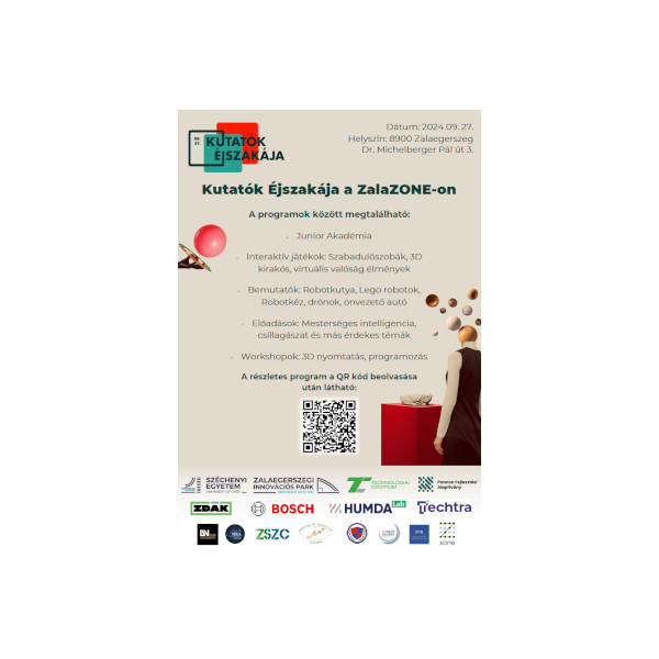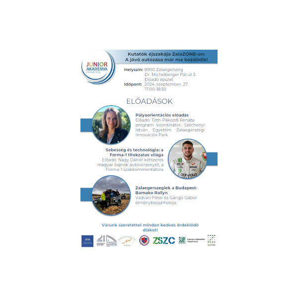 A zalaegerszegi Junior Akadémia célja, hogy a fiatalokat motiválja és tájékoztassa a különböző tudományterületekről és szakmákról. A 2024-ben indult rendezvénysorozat ötödik eseménye a ZalaZONE Kutatási és Technologiai Központban kerül megszervezésre a ZalaZONE kutatók éjszakája program részeként.